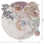 Tapety w kształcie koła, przygotowane zostały jako dekoracja o średnicy 130 cm lub nieco mniejszej jeśli ze wzoru wystają dodatkowe elementy jak kwiaty, skrzydła czy inne detale.