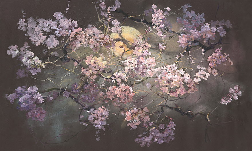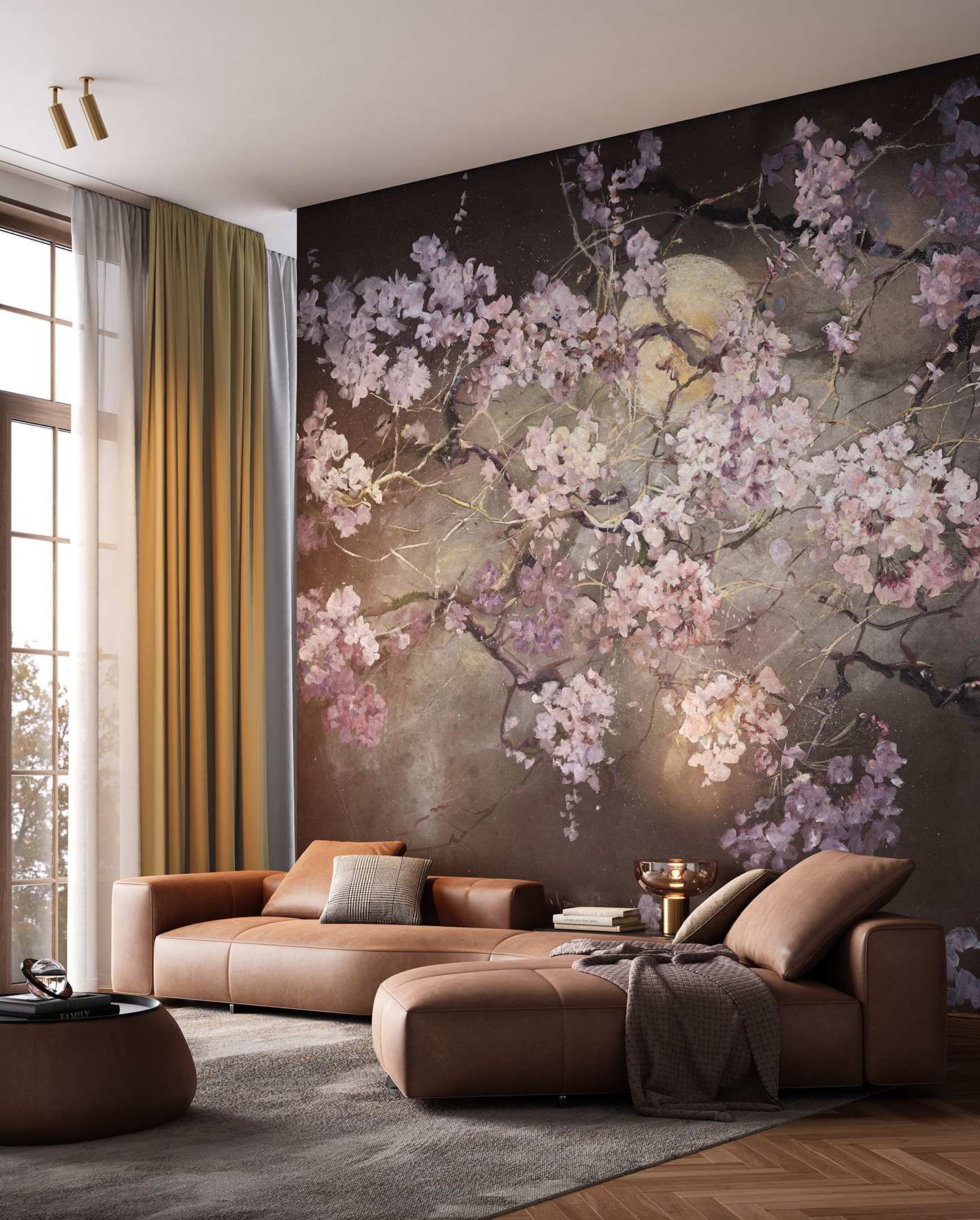 Tapeta LUNA – nastrojowy mural z kwitnącą wiśnią w blasku księżyca Luna to wyjątkowa tapeta o poetyckim, malarskim charakterze. Delikatne różowe kwiaty sakury rozświetlają ciemne tło, a subtelnie widoczny księżyc...
