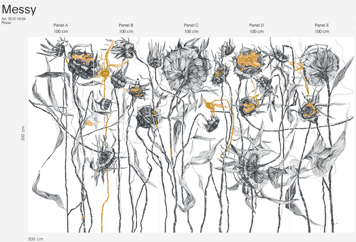 Szukasz nietuzinkowej tapety z kwiatami, która przełamuje schematy? Messy to artystyczna prowokacja – lekka, graficzna i pełna energii.