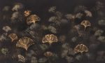 Jak zmierzch w japońskim ogrodzie – tak wybrzmiewa Tapeta Nero. Jej głębokie, niemal czarne tło pulsuje subtelną grą światła i cienia. Wachlarzowate liście miłorzębu raz są wyraźnie zarysowane w miedziano‑złotym, metalicznym połysku, innym razem zaś są ciche i zamglone w beżach, oliwkach i szarozieleniach. Tworzy to kompozycję o nieliniowym rytmie. Efekt? Przestrzenna głębia i luksusowy spokój, jak przy wielkoformatowym muralu.