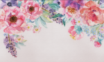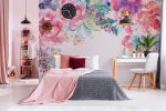 Paleta kolorów jest bogata, a jednocześnie eteryczna. Jaskrawe róże i fuksje przenikają się z lawendą i głębokim fioletem. Całość jest chłodzona miętą i szałwią, a także wzbogacona kroplą błękitu niezapominajek na kremowym tle. Akwarelowe przejścia barw, miękkie kontury oraz wyczuwalna „oddechowość” kompozycji nadają ścianie artystyczny, boho-chic charakter. Ten styl pięknie współgra zarówno z minimalistycznym wystrojem, jak i bardziej romantycznymi aranżacjami.