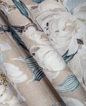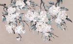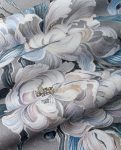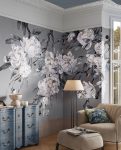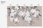 Tapeta Nevin to hołd dla klasycznego piękna w nowoczesnym wydaniu. Na eleganckim, szarym tle rozpościerają się gałęzie z dużymi, ręcznie malowanymi kwiatami w tonacjach bieli, błękitu i chłodnego granatu. Styl tapety przywodzi na myśl japońską estetykę i technikę tuszu, dzięki czemu całość wygląda lekko, ale z wyraźnym charakterem.