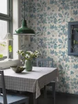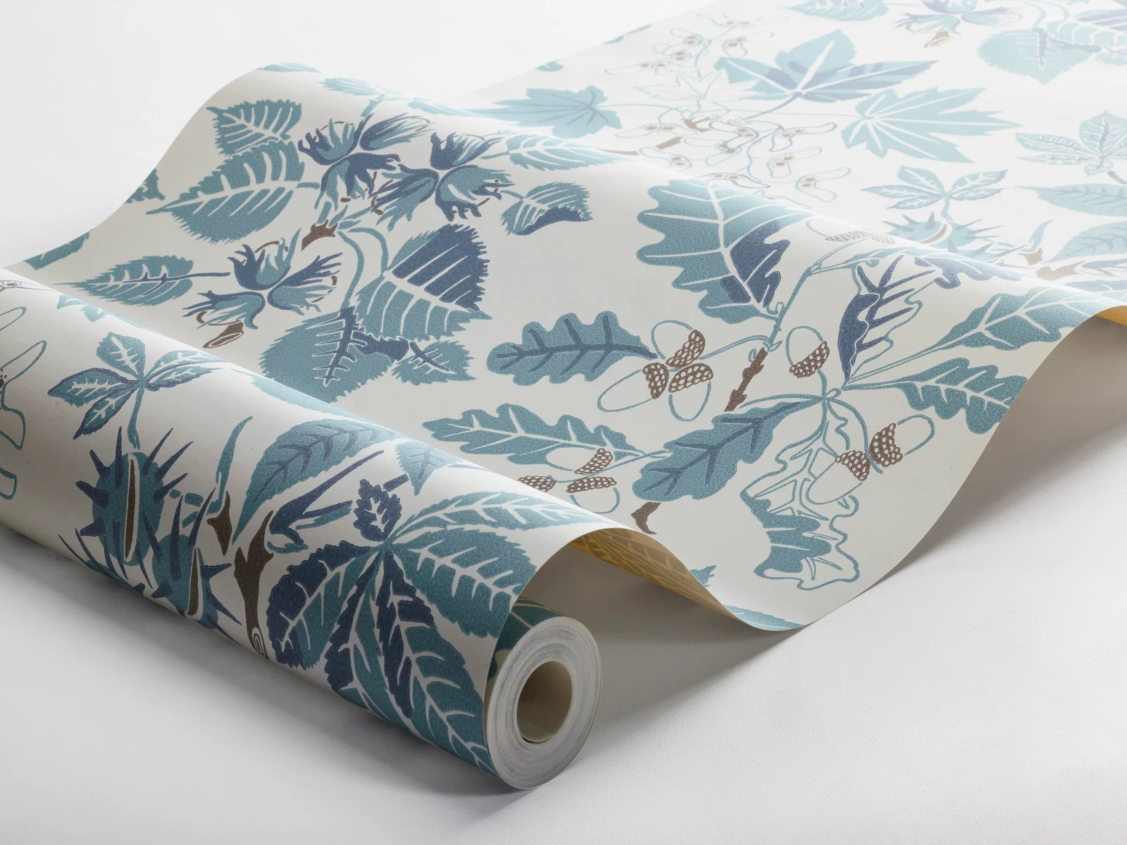 Tapeta Arboretum, kolorowana w odcieniach turkusu i ciepłego błękitu, z brązowymi detalami na ciepłym białym tle, przeniesie Cię do kapryśnego świata. Ten wzór z nadrukiem na powierzchni w stylu lat...