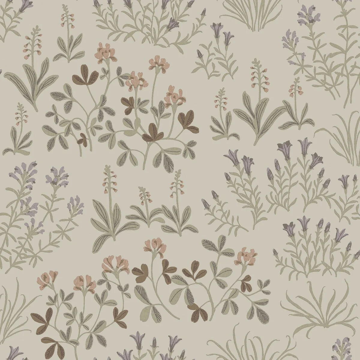 Tapeta Noras Äng w harmonijnych, ziemistych tonach oferuje kojącą ucieczkę, dzięki lnianemu tłu i delikatnym kwiatom w pudrowych rdzawoczerwonych oraz fioletowych odcieniach. Wzór, celebrujący powściągliwą elegancję szwedzkiej letniej łąki, zyskuje na urodzie dzięki technice druku wklęsłego. Zawieś tę tapetę, zaprojektowaną przez Norę Tysklind, aby stworzyć przestrzeń relaksu, w której poczujesz się jak na własnej pięknej, uspokajającej łące kwiatowej.
