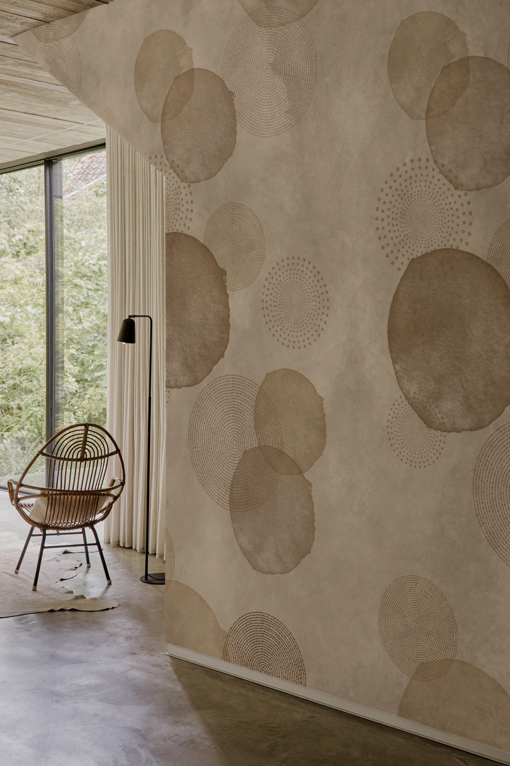 Tapeta OZ Wall&Deco to esencja współczesnej elegancji. Subtelny, organiczny rysunek łagodnych krzywizn tworzy kojące tło. Porządkuje przestrzeń i podkreśla charakter wnętrza, zamiast je przytłaczać.