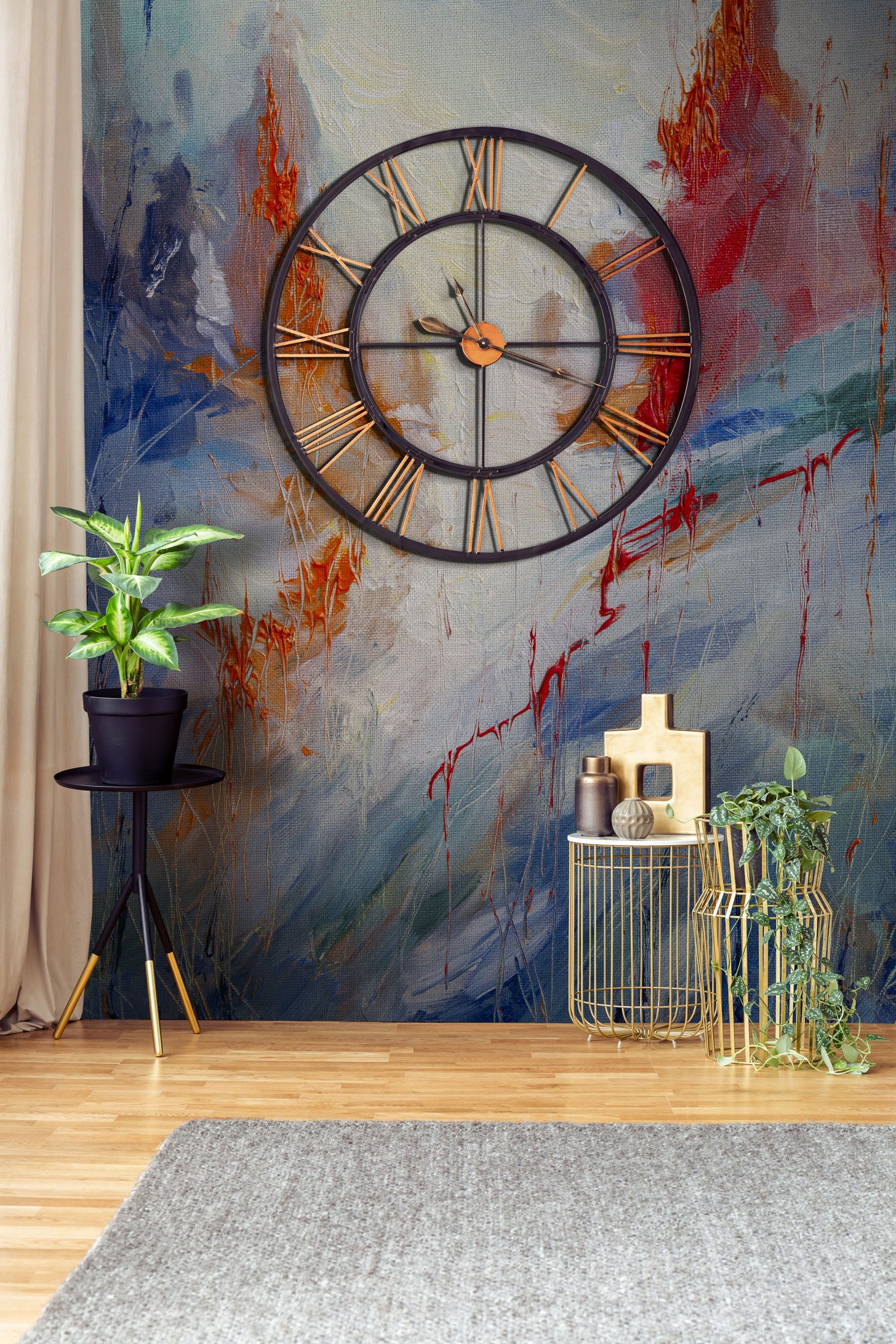Abstrakcyjna tapeta wielkoformatowa, muralowa galeria w wnętrzu – faktura pędzla, matowy, wierny druk. Na wymiar, 11 materiałów (Aqua Zone/Extreme), łatwa adaptacja do przestrzeni.
