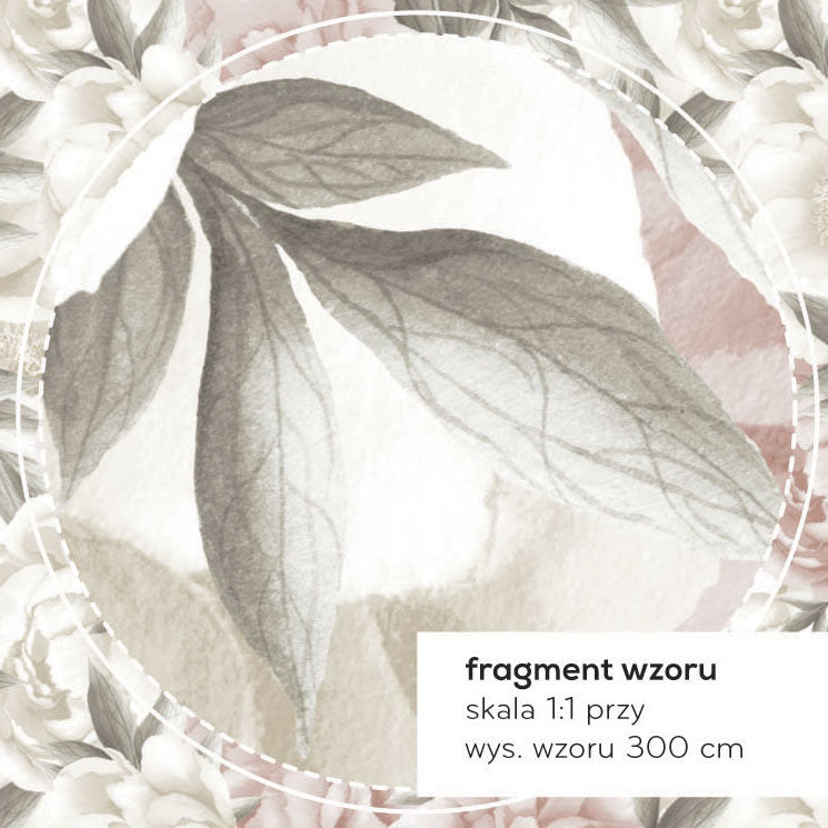 Subtelny, pastelowy wzór peonii tworzy muralny efekt na ścianie; matowe wykończenie, zero odblasków. Produkowana na wymiar, z darmowym zapasem 5 cm. Idealna jako ściana akcentowa w sypialni i salonie....