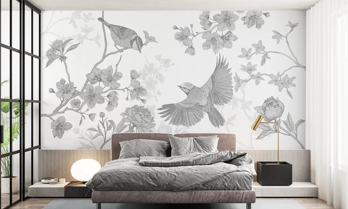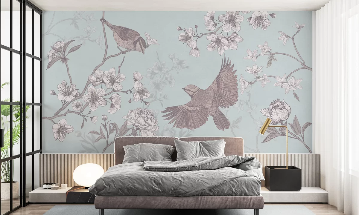 Zaproś naturę do swojego domu. Elegancka tapeta Ptaki utrzymana jest w jasnych, pastelowych barwach. Wzór jest delikatny, wszystkie detale idealnie dopracowane. Całość sprawia wrażenie delikatnej inspiracji kulturą japońską. Piękna, delikatna kolorystyka w odcieniach bieli, beżu i niebieskiego pomoże wnętrzu nabrać przytulności.
