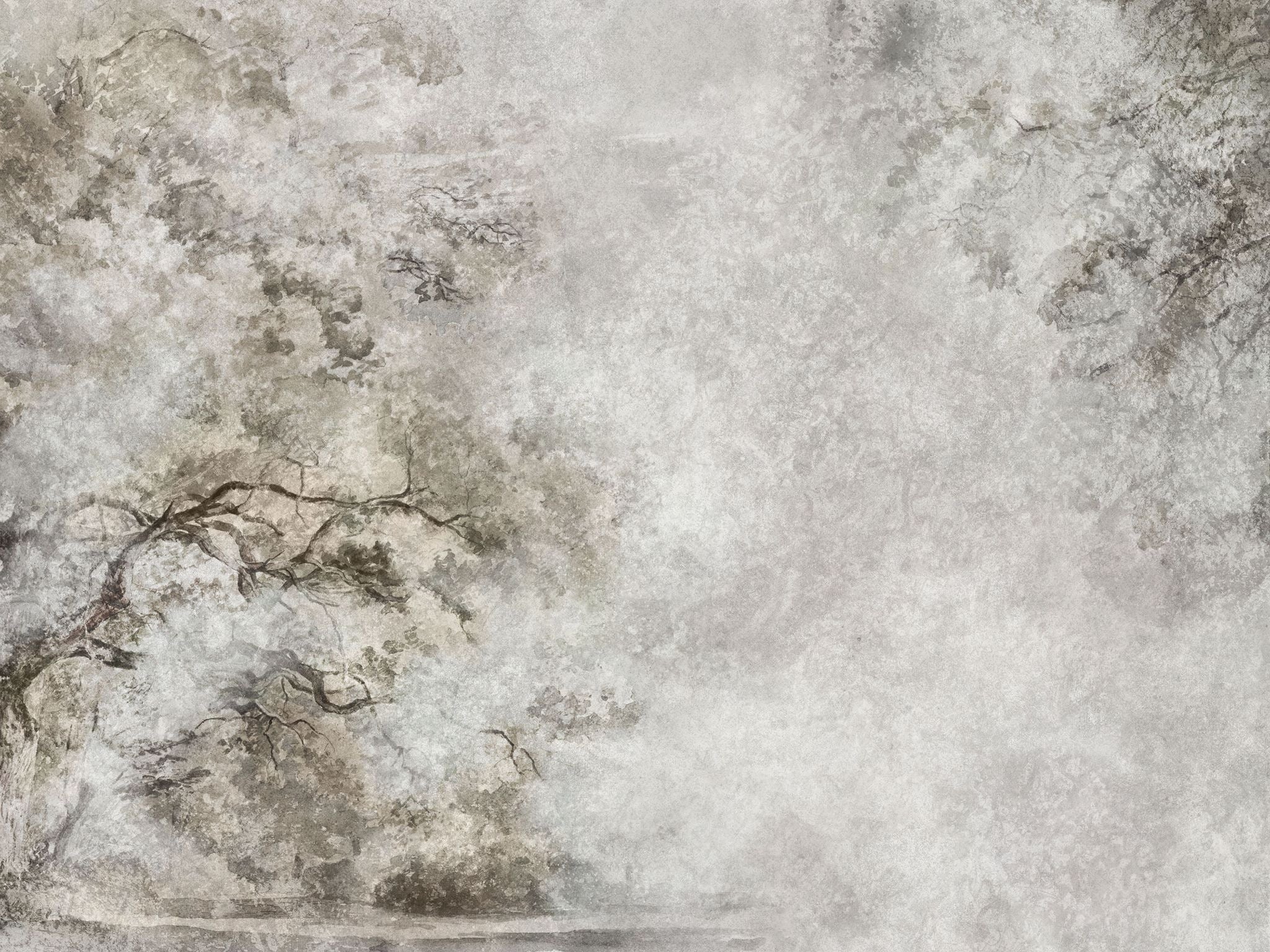 Tapeta Sanctuary Beige to wizualna odskocznia dla wnętrza. Przedstawia spokojny pejzaż zamglonego lasu w malarskim, wyrafinowanym stylu. Sękate, rozgałęzione konary swobodnie rozchodzą się jak tuszowy szkic. Ich głębokie brązy subtelnie kontrastują z miękkimi, przydymionymi szarościami tła oraz zgaszonymi akcentami zieleni i khaki. Delikatny beż ociepla kompozycję, tworząc kojącą, ziemistą paletę, która uspokaja harmonię przestrzeni.
