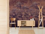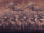 Secret Forest to wzór inspirowany sztuką, w kolekcji Nature. Tapeta przedstawia sosnowy las, o zachodzie słońca. Wzór jest bardzo neutralny i elegancki. Kolorystyka oberżyny, brązu i zgaszonego borda, będzie dobry tłem do jasnych mebli. Idealnie wkomponuje się w styl naturalny, skandynawski i boho, a także loftowy.
