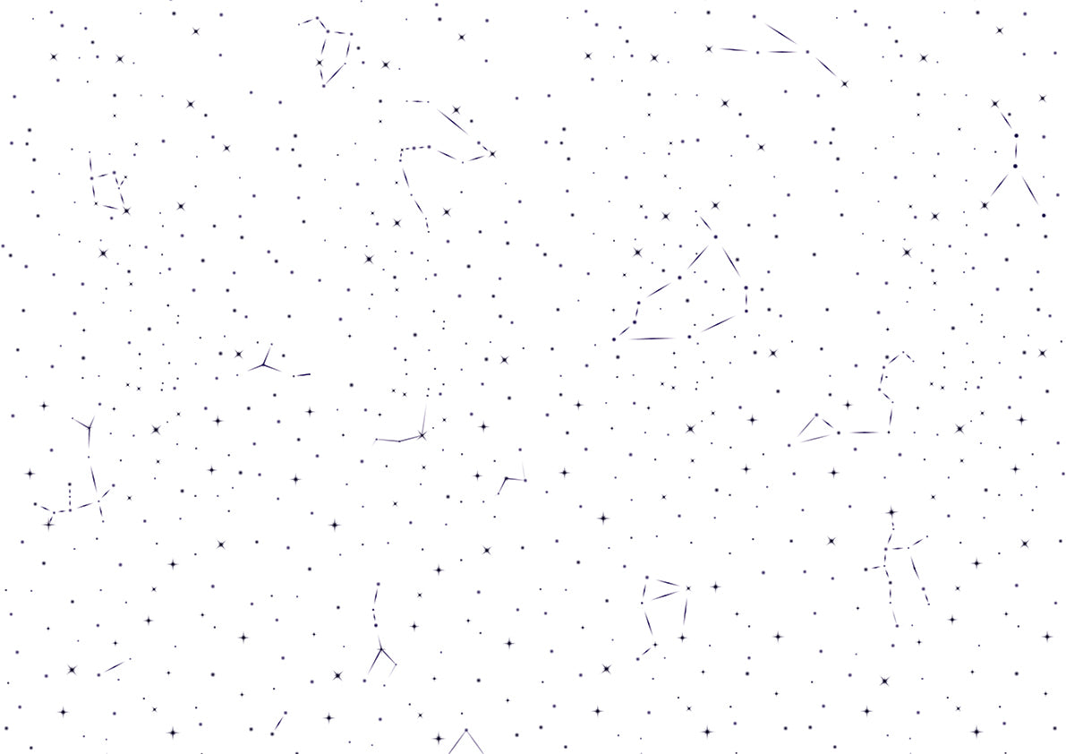 Zauważysz precyzję rysunku – czyste, wyraźne kontury oraz harmonijne rozmieszczenie elementów. Jasne tło optycznie rozjaśnia i powiększa przestrzeń. Powtarzalność wzoru została zaprojektowana tak, aby łączenia wizualnie się komponowały, tworząc płynny, „oddychający” obraz nocnego nieba.