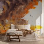 Tapeta Story to zaproszenie do świata intensywnych emocji i nowoczesnej sztuki. Ta wielkoformatowa kompozycja, inspirowana abstrakcyjnym ekspresjonizmem, świetnie imituje obraz na ścianie. Wyraziste, szerokie pociągnięcia pędzla oraz „impastowy” charakter barw tworzą unikalny efekt. Paleta kolorystyczna łączy nasycone pomarańcze, ciepłe odcienie rudości i terakoty z głębokimi brązami oraz słonecznymi żółciami i ochrą. Duże, złamane białe pola oraz subtelne białe linie dodają oddechu i kontrastu.