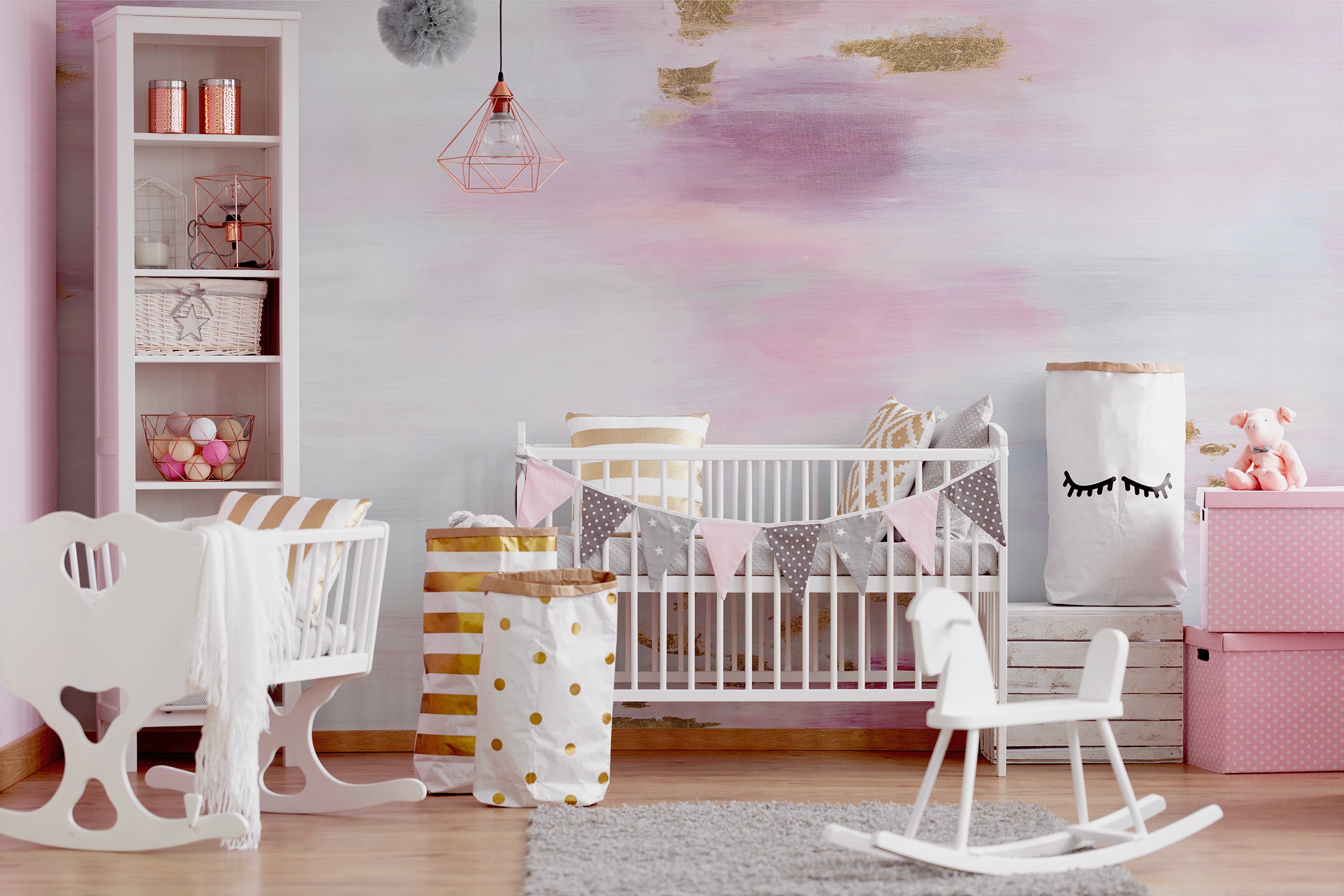 Ręcznie malowana tapeta w pudrowych odcieniach różu, fuksji i bieli z delikatnymi złotymi akcentami. Wielkoformatowy, organiczny rytm tworzy muralowy efekt, dodaje elegancji i światła.