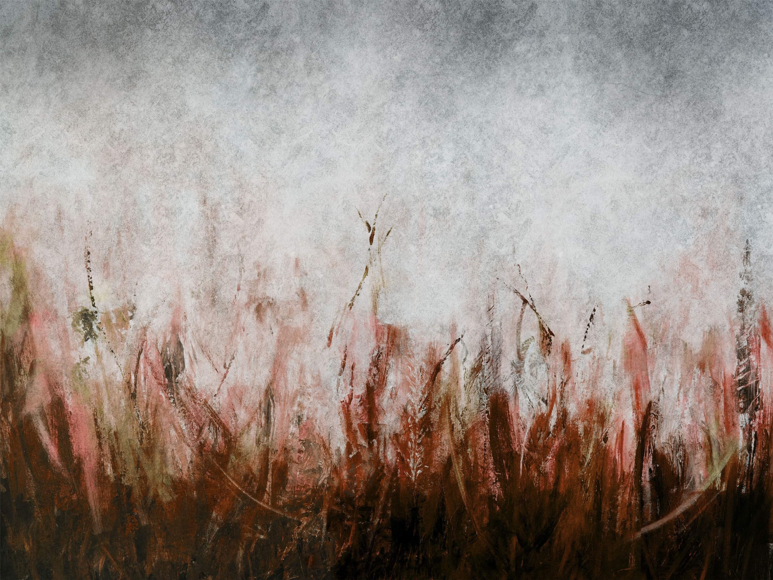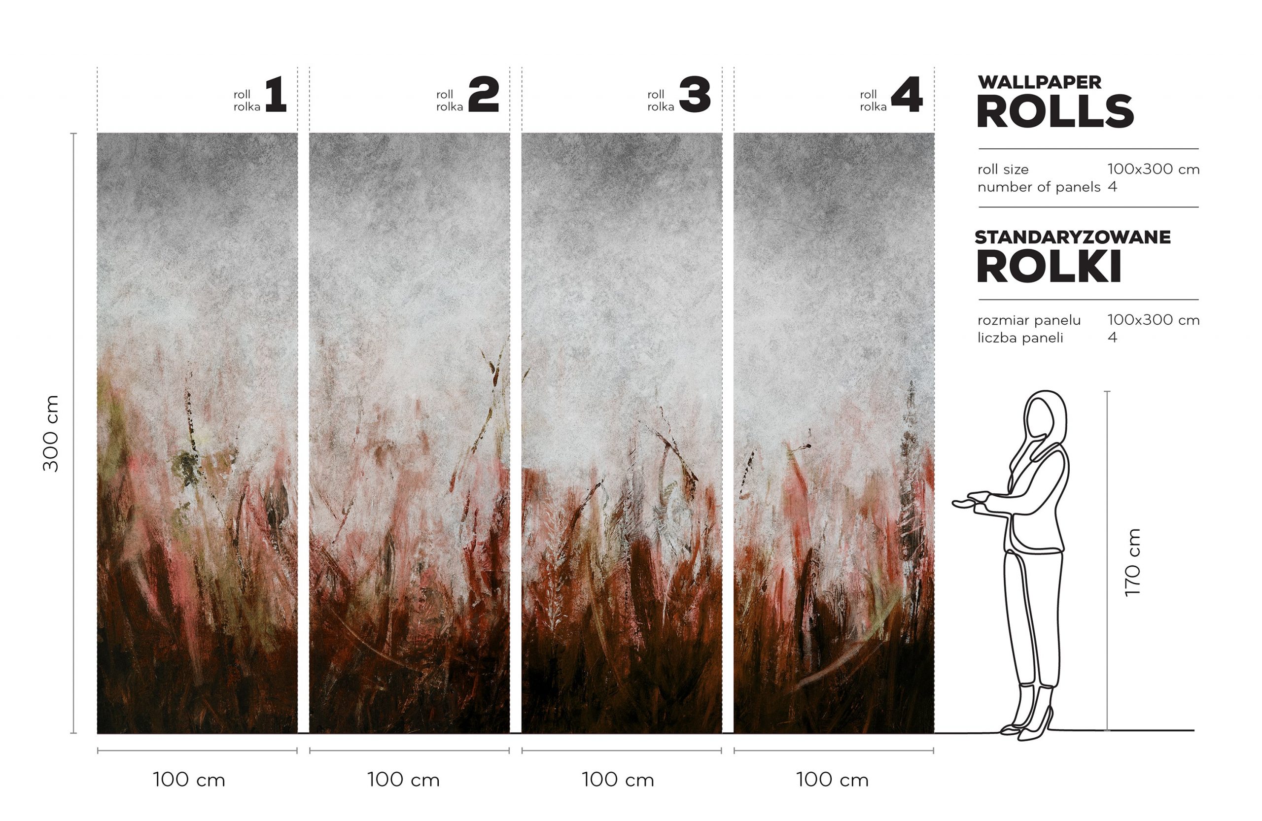 Wzór składa się z wyrazistych, pionowych i ukośnych pociągnięć pędzla, bez wyraźnej powtarzalności. To tworzy efekt wielkoformatowego muralu. Rytm smug oraz miękkie przejścia tonalne wprowadzają interesujący kontrast. Surowe „betonowe” szarości zderzają się z ciepłem rudości, tworząc atmosferę dynamiczną, a zarazem kontemplacyjną. Z bliska zachwycają detale i niuanse kolorystyczne. Satynowo-matowa powierzchnia pięknie rozprasza światło, podkreślając malarską fakturę oraz intensywność barw.