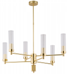 Żyrandol mosiężny z sześcioma cylindrycznymi kloszami ze szkła, regulowana wysokość (50-75 cm), średnica 68 cm. Luksusowy, nowoczesno-klasyczny design; idealny nad stół.